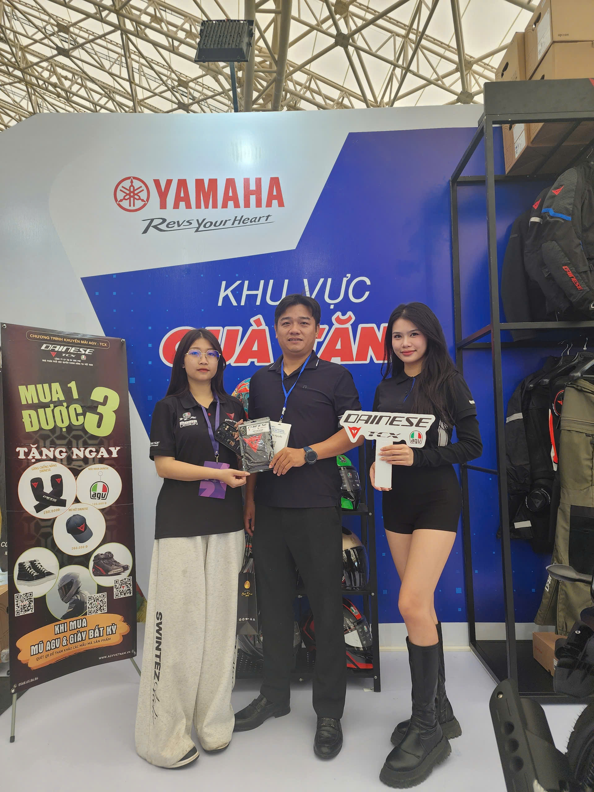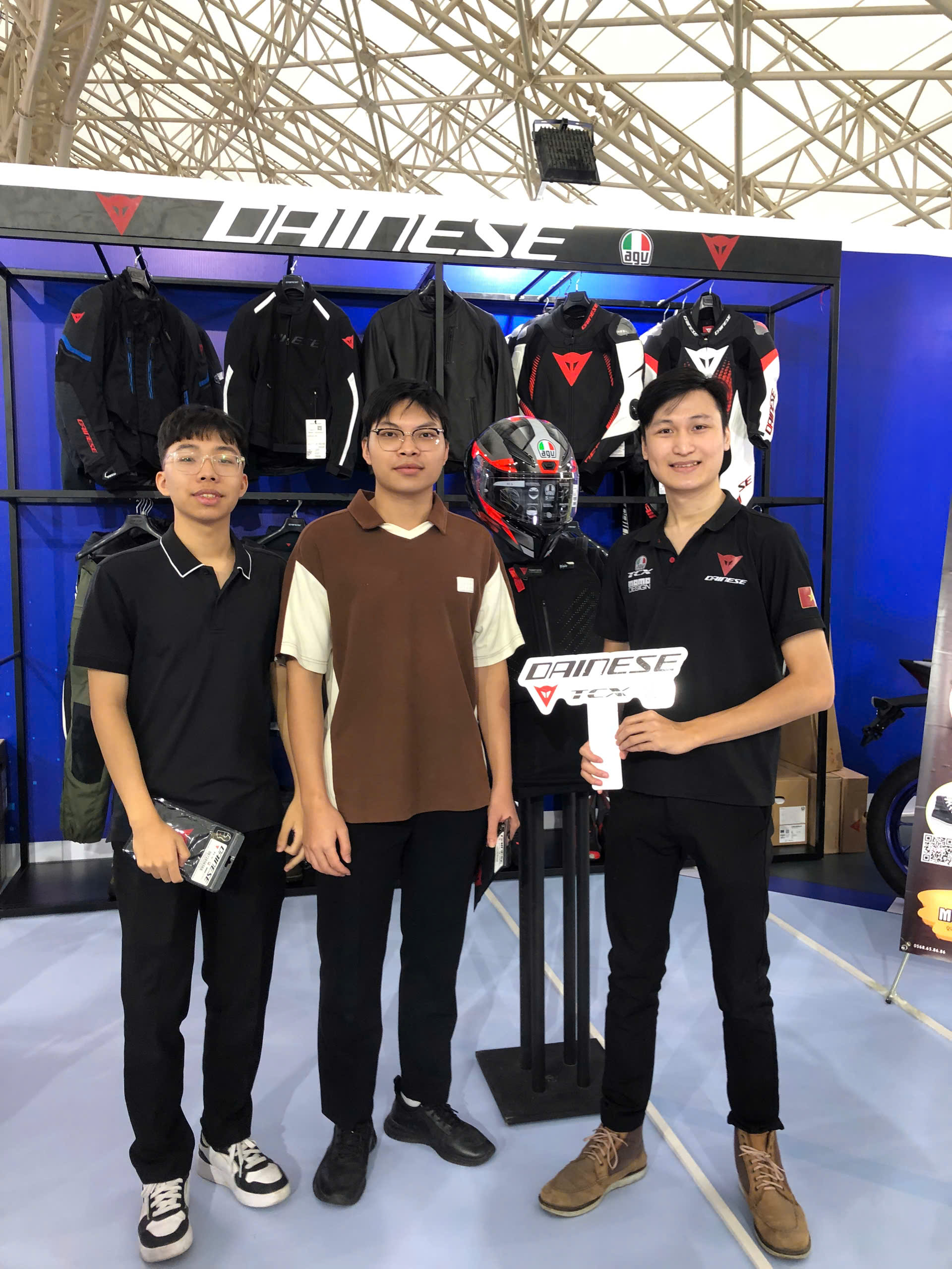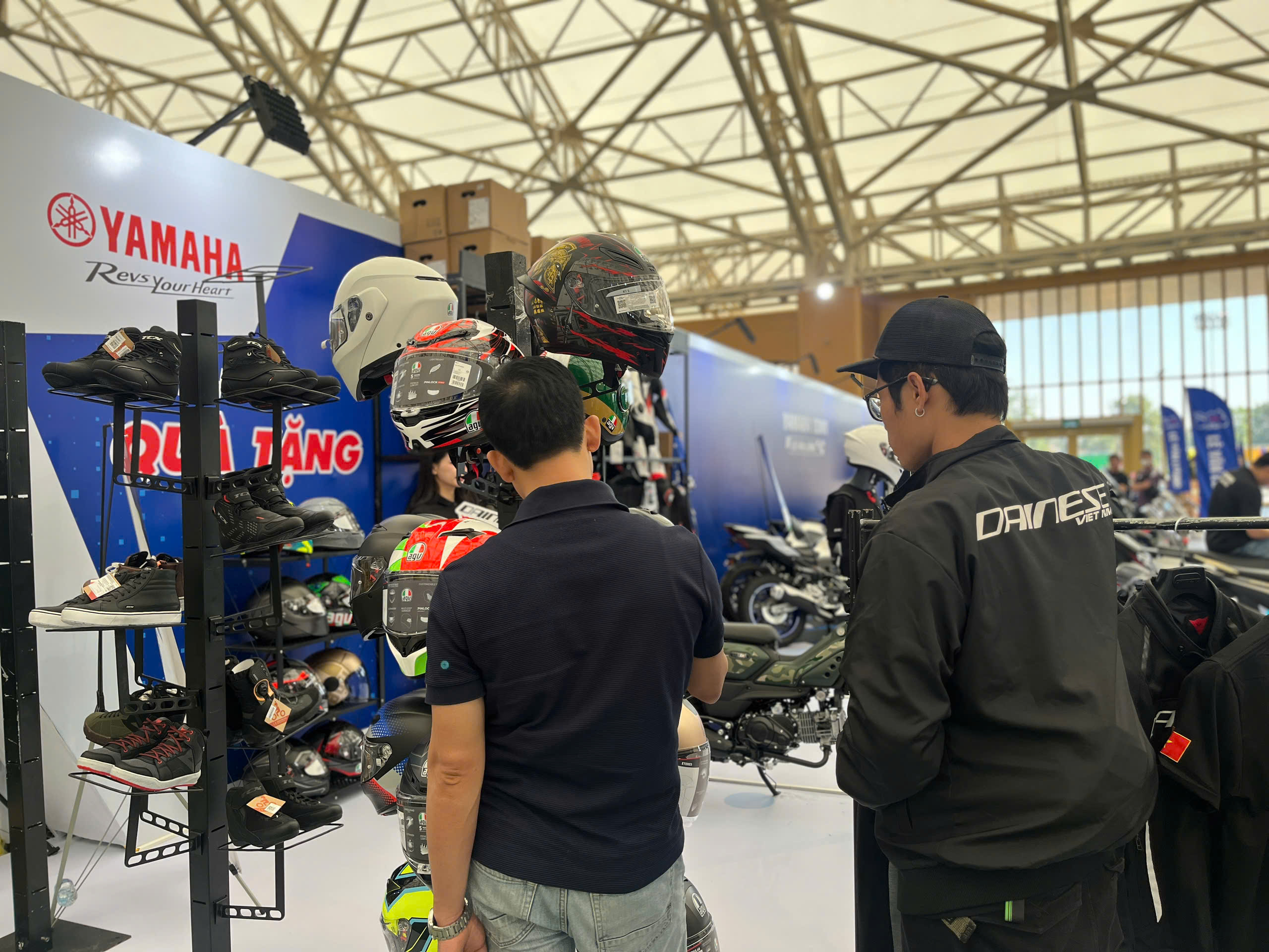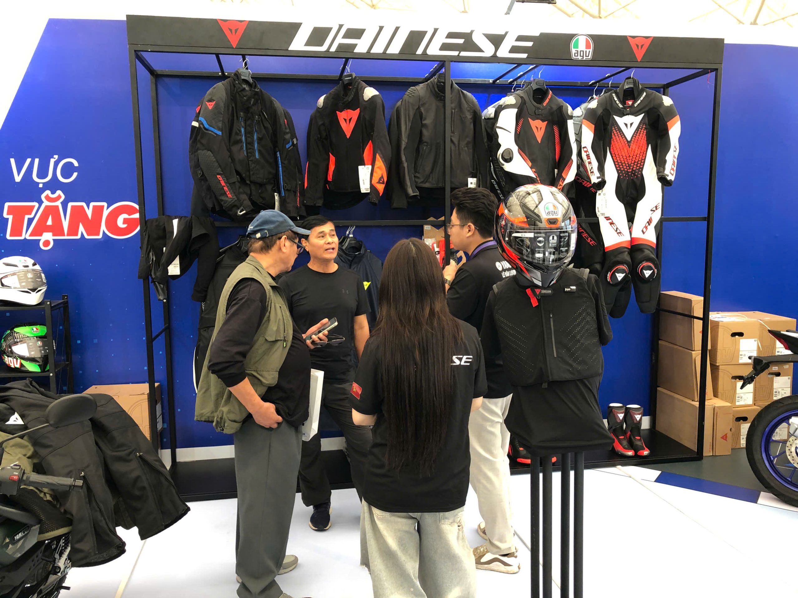 Khách ghé gian hàng Dainese – AGV – TCX nhận được nhiều phần quà lưu niệm như lời tri ân từ nhà phân phối chính hãng. Sự hào hứng của khách khi nhận quà, thử sản phẩm và chụp ảnh tại booth tạo nên bầu không khí sôi nổi xuyên suốt các ngày triển lãm.